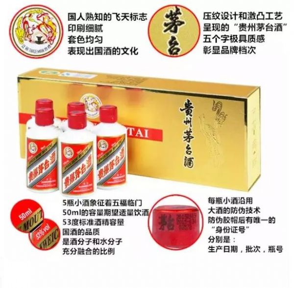 50ml條裝酒是袖珍版飛天茅臺(tái)酒。從投料到出廠要經(jīng)過(guò)30道工序165個(gè)工藝環(huán)節(jié),歷時(shí)五年之久。始終如一的品質(zhì)保證,加之茅臺(tái)酒不添加任何外來(lái)物質(zhì)、以酒勾酒的勾兌工藝是茅臺(tái)酒當(dāng)之無(wú)愧成為中國(guó)白酒的健康之宗,中國(guó)制造的國(guó)貨之魂,中國(guó)文化的國(guó)際之路。