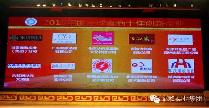 甘肅泰和實業(yè)(集團)有限公司摘得"2015年度全球秦商十佳創(chuàng)新企業(yè)"