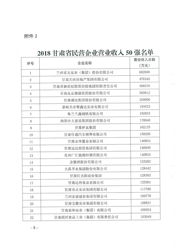 ★ 2018甘肅省民營(yíng)企業(yè)營(yíng)業(yè)收入50強(qiáng)榜單 ★