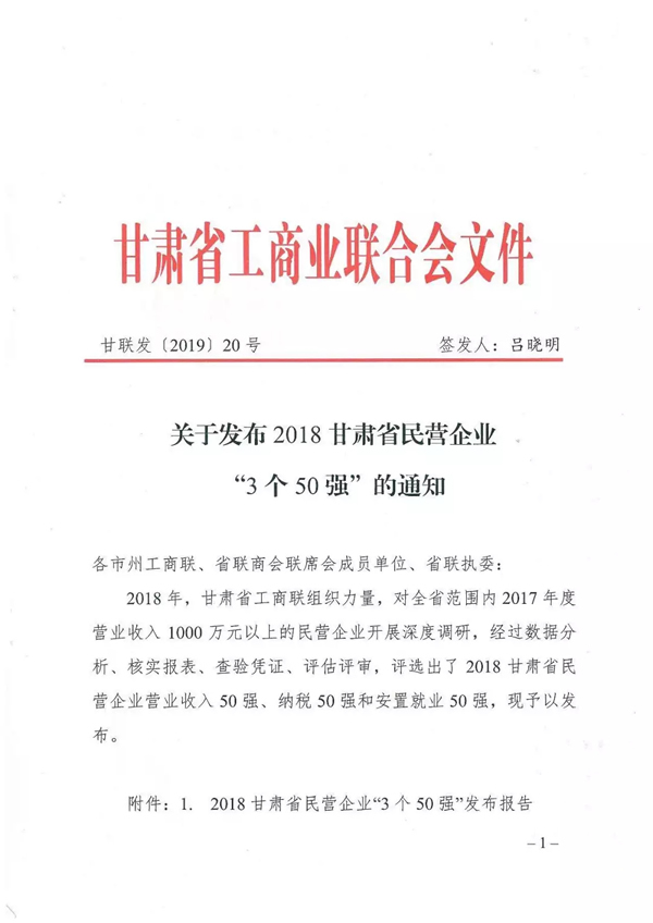 2018年甘肅省工商聯(lián)組織力量,對(duì)全省范圍內(nèi)2017年度營(yíng)業(yè)收入1000萬(wàn)元以上的民營(yíng)企業(yè)開(kāi)展深度調(diào)研,經(jīng)過(guò)數(shù)據(jù)分析、核實(shí)報(bào)表、查驗(yàn)憑證、評(píng)估評(píng)審,評(píng)選出了2018甘肅省民營(yíng)企業(yè)營(yíng)業(yè)收入50強(qiáng)、納稅50強(qiáng)、安置就業(yè)50強(qiáng)。