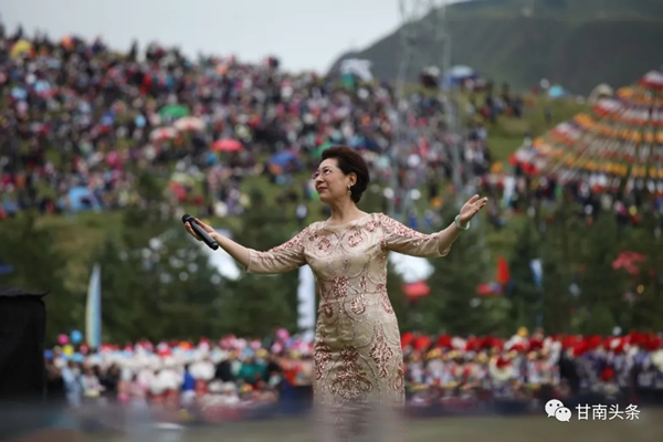開幕式上,國家一級演員、著名女中音歌唱家關(guān)牧村,著名藏族歌手降央卓瑪、扎西尼瑪及甘南本土歌手年才讓等先后登臺亮相,用膾炙人口的經(jīng)典曲目向九色甘南獻禮。文藝演出在萬人鍋莊《吉祥草原心手相連》的盛況中劃上了圓滿的句號。