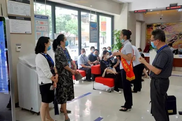 隨后,視察調研組一行參觀了市級文明單位蘭州銀行金城支行。在街道黨工委黨建集結號的引領下,蘭州銀行金城支行以文明精神引領業(yè)務發(fā)展,以文明力量推動經濟管理,以文明信息指引服務前進,為居民群眾提供優(yōu)質高效溫暖的金融服務,力爭創(chuàng)建省級文明單位,代表和委員們現(xiàn)場體驗了金融行業(yè)的貼心服務。