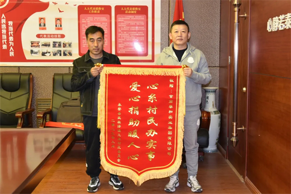 為響應“萬企興萬村”蘭州行動村企結對興村工作,集團領導深入永登縣兌角村考察調(diào)研,詳細了解該村亟待解決的困難。在了解到該村農(nóng)田灌溉難問題后,捐款3萬元人民幣用于該村農(nóng)業(yè)灌溉井施工項目。12月29日,兌角村黨支部書記、村委會主任趙發(fā)軍一行2人,為泰和集團送來了一面寫有“心系村民辦實事 愛心捐助暖人心”的錦旗,對泰和集團的善舉表示感謝。